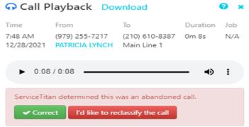 5. Press play and skip to the beginning of answered call. Select the name of the person answering in “Who took the call?”