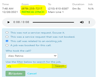 This call was related to an existing job. If there is a name highlighted in blue copy and paste the name into the search.